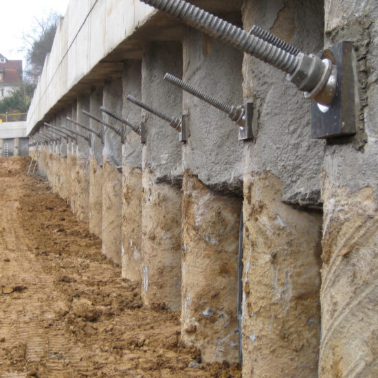 Los anclajes representan una forma rentable de asegurar diversos tipos de muros de contención, apuntalamiento temporal de excavaciones y estabilización permanente de taludes, incluidas las estructuras de retención para adaptarse a las condiciones estructurales prevalecientes. Los micropilotes TITAN utilizados como pilotes de tensión según DIN EN 14199 han demostrado ser una alternativa económica a los anclajes al terreno pretensados permanentes según DIN EN 1537.