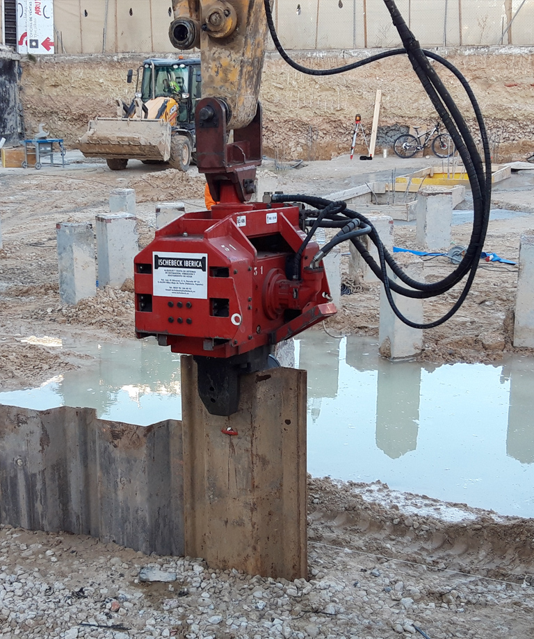 Los equipos de vibración son ideales para la hinca de tablestacas de cualquier sección, plana, en U o en Z, en la mayoría de casos sin ser necesario ni el cambio de las mordazas de la vibradora. Las pantallas de tablestacas pueden extraerse con el mismo método si se trata de intervenciones temporales, recuperando así arriostramientos y tablestacas.