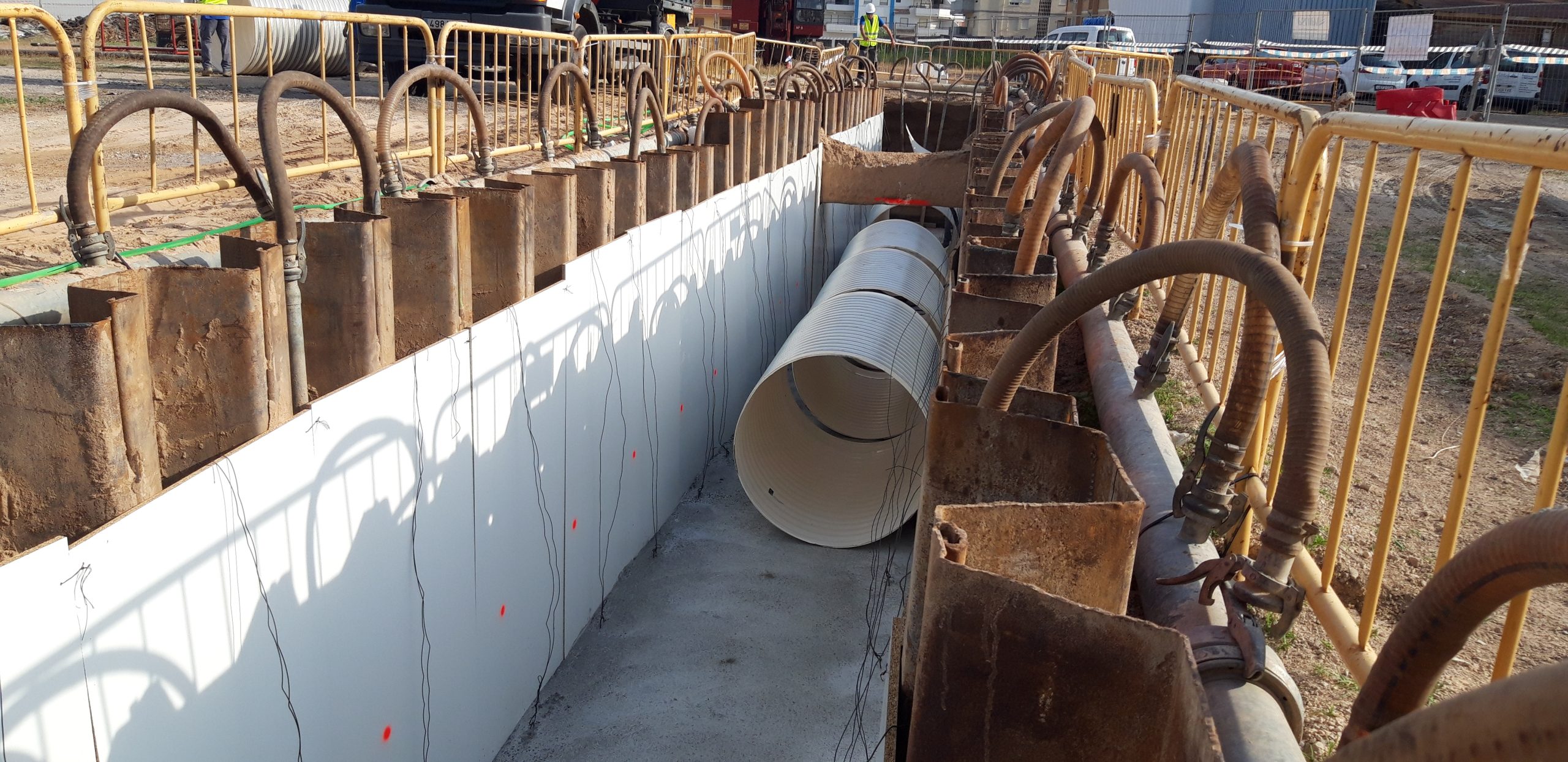 Por otro lado, en algunos casos se necesitan realizar recintos de los que eliminar el agua para hacer intervenciones temporales en entornos acuáticos, como ejecución de cimentaciones que quedarán sumergidas, o excavación de grandes recintos para la ejecución de obras hidráulicas como los tanques de tormentas.