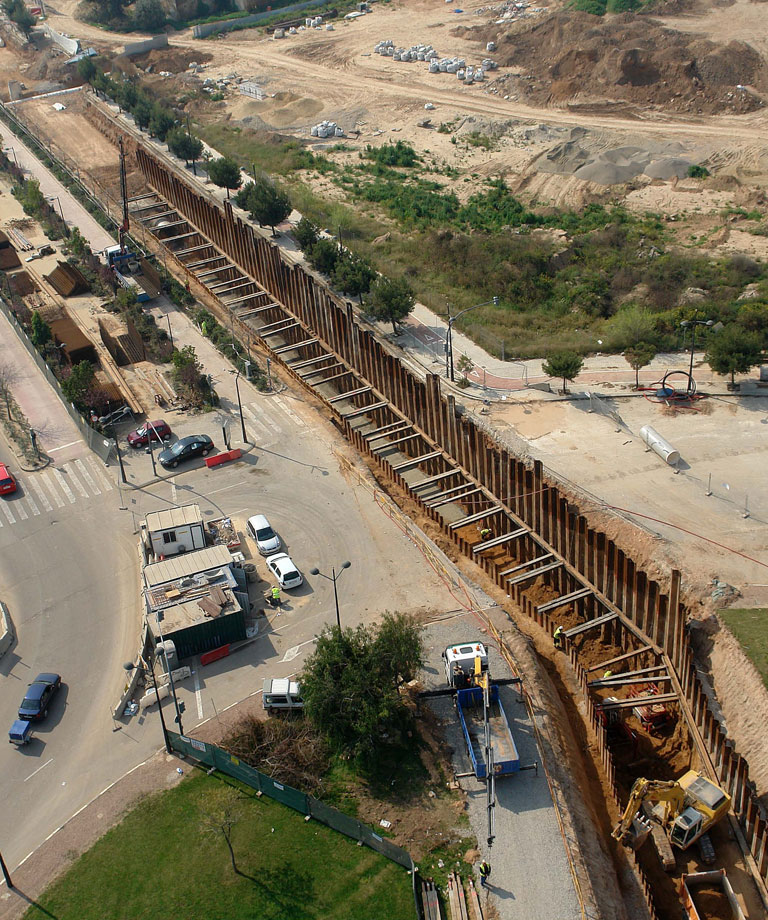 Según el tipo de terreno, la profundidad de la excavación, y la presencia o no de nivel freático, estas pantallas podrán ser en ménsula o necesitar de uno o varios niveles de arriostramiento. En este caso, y según las dimensiones en planta del pozo, el arriostramiento puede ser mediante un marco soldado in situ o mediante perfiles y codales colgado de la cabeza de las tablestacas.