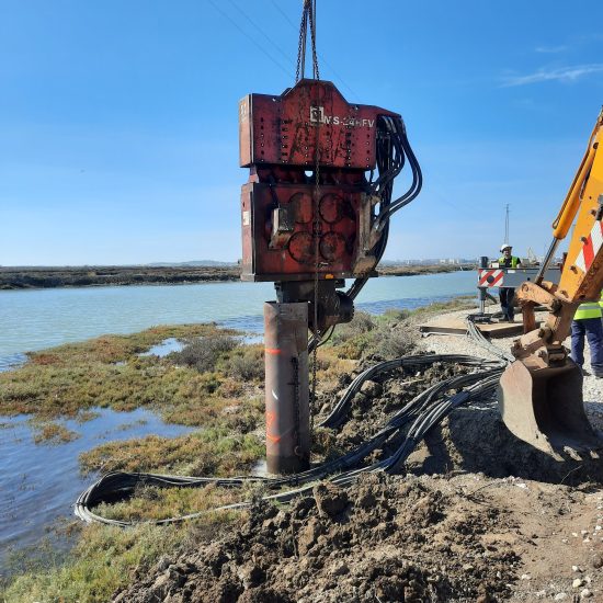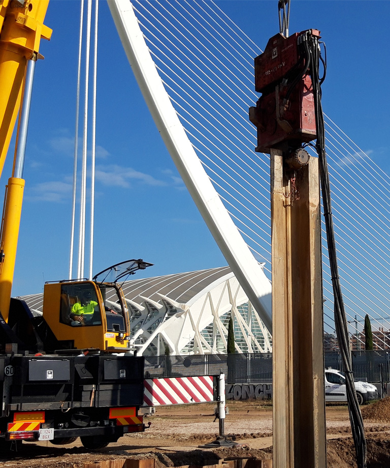 La vibración es la técnica más eficiente en la hinca de elementos de acero como tablestacas, encamisados de acero, perfiles, etc. Por ello, en los terrenos cuya consistencia lo permite, es el método más utilizado por sus altos rendimientos.