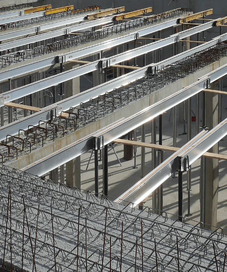 La combinación de las vigas de encofrado de aluminio Alu-TITAN con la amplia gama de puntales ISCHEBECK, asegura soluciones de apeo óptimas para losas prefabricadas con pocos componentes. Los sistemas se adaptan a los distintos requisitos, como altura libre, espesor de losa, separación entre vigas y cargas admisibles.