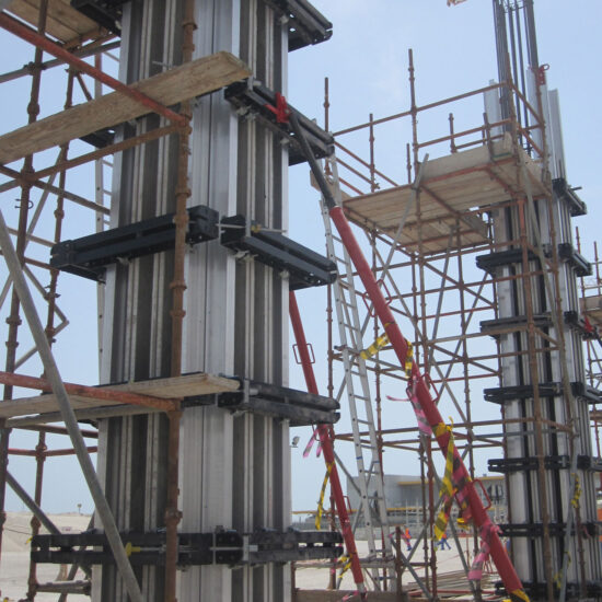 La geometría especial del encofrado SF permite el hormigonando de pilares de dimensiones hasta 100 x 100 cm.
