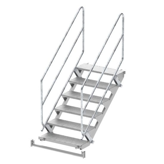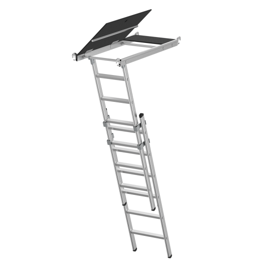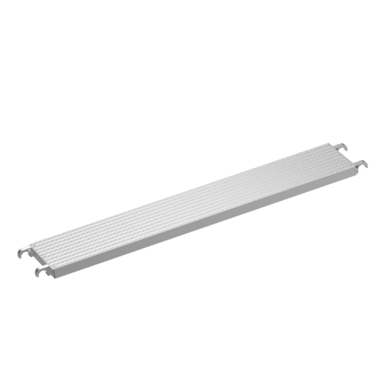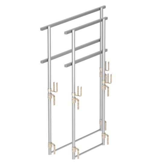 Los tablones de aluminio para cimbras y los tablones de tape con chapa estriada antideslizante, garantizan un trabajo seguro en altura. El balaustre de protección lateral Alu-TITAN se inserta en los bastidores de aluminio dela cimbra para garantizar un acceso seguro.