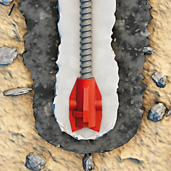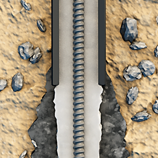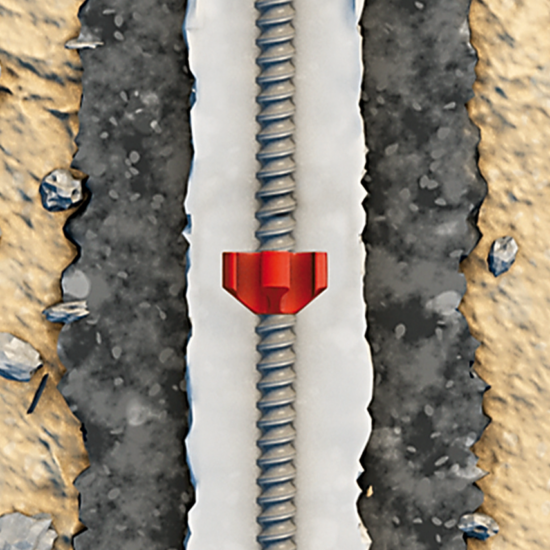 El corazón del sistema es el micropilote TITAN autoperforante que transfiere cargas al subsuelo. Los micropilotes pueden transferir tensión, compresión y cargas cíclicas y se utilizan para asegurar estructuras.